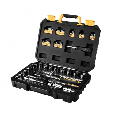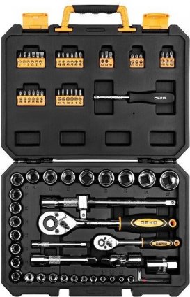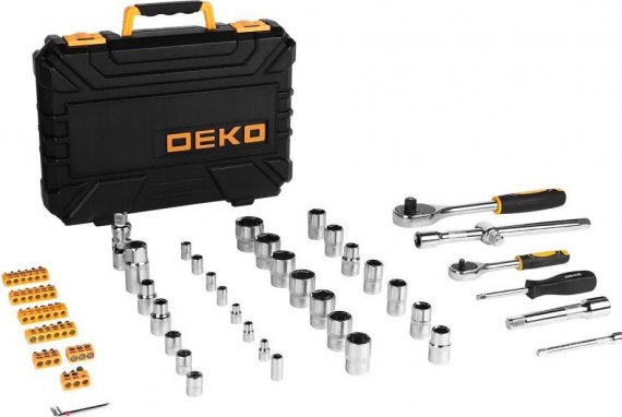 Набор инструмента для авто в чемодане Deko DKMT72 (72 предмета) размер головки 4-27мм Тип головок 6-гранные Присоединительный размер 1/4 + 1/2 дюйма пластик