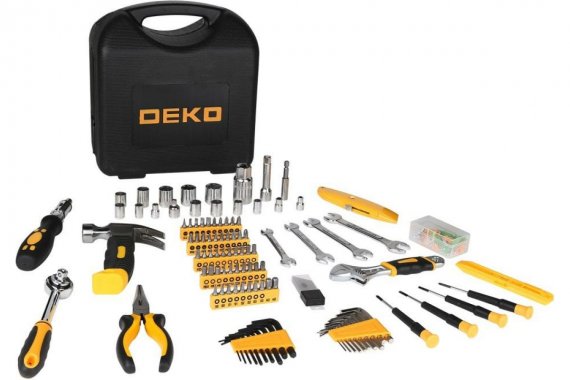 Универсальный набор инструмента для дома и авто в чемодане DEKO DKMT165 065-0742 включает в себя большое количество инструмента для эффективной работы с крепежом. В том числе со сложным.