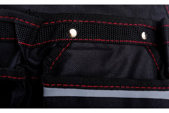 Открытый вид сумки позволяет быстро доставать и убирать инструменты. Плотная ткань обеспечивает сохранность изделия долгое время. Наличие пояса поможет освободить руки, когда это необходимо.