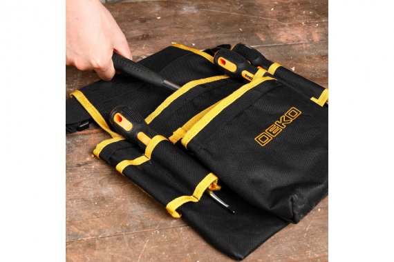 Сумка Deko для инструментов M Max нагрузка 5кг Материал Oxford600 380x316x75 мм черный/оранжевый(желтый)