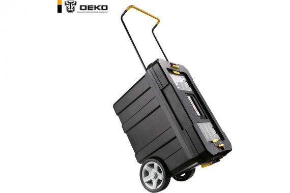 Система хранения инструментов DEKO DKTB5 представляет собой большой пластиковый контейнер на колесах, который очень легко транспортировать. Благодаря отсекам для малогабаритных деталей идеально подойдёт для хранения не только для крупных, но и мелких инструментов и аксессуаров. Благодаря удобной ручке, которая складывается, система хранения легко поместится в багажнике автомобиля.