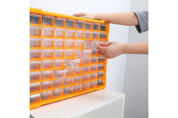 Система хранения DEKO DKTB15 представляет собой удобный контейнер с 64 ячейками для хранения инструментов и аксессуаров. Качественное исполнение гарантирует долгий срок службы системы хранения.
