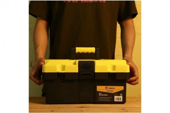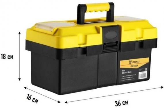 Ящик для инструментов DEKO DKTB24 (360х180х160мм) для ручного инструмента Размер 14дюйм пластик черный/желтый
