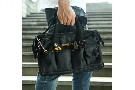 Сумка для инструментов с карманами DEKO DKTB53 065-0866 идеально подходит для хранения и переноски инструментов. Эргономичная ручка позволяет носить сумку как на плече, так и в руках.Сумка имеет 8 карманов различного размера, что делает хранение инструментов наиболее удобным и безопасным. Размер сумки: 35.5×21×23 см