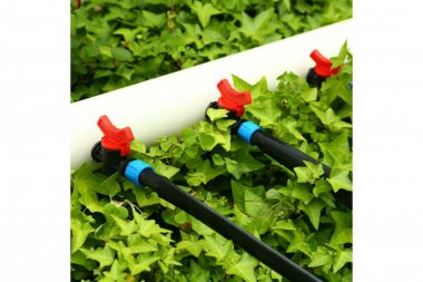 Автополив происходит за счет эмиттеров, расположенных на расстоянии 30 см друг от друга, которые по мере поступление к ним воду начинают постепенное орошение земли.