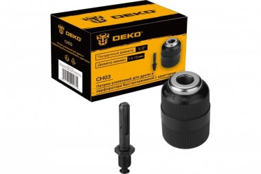 Патрон усиленный идеально подойдет для дрели и перфоратора DEKO CH03, быстрозажимной, с адаптером SDS+; 1/2-20 мм; 1,5-13 мм. Отлично справляется со своей работой, выполнен из качественного материала.