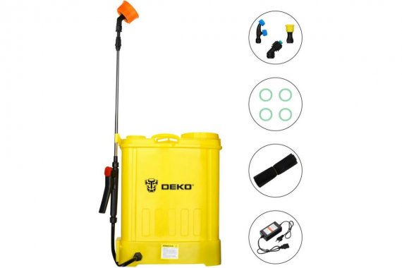 Опрыскиватель садовый аккумуляторный DEKO DKSP12 Li-ion, 14 л Мощность (кВт)0.035 Длина штанги 65-99мм пластик желтый Тип аккумулятора Li-Ion Напряжение аккумулятора 12В 435х115х195 мм