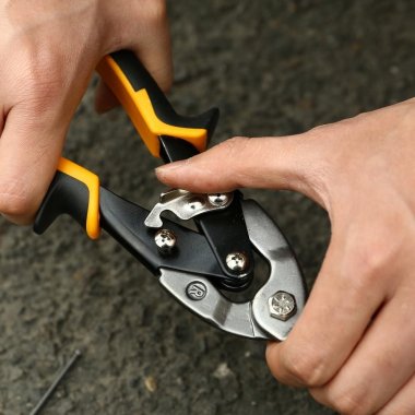 Ножницы по металлу DEKO HT19, правые 065-0974 изготовлены из высокоуглеродистой инструментальной стали. Применяются для прямой и фигурной резки (в правую сторону) листовых материалов из стали повышенной твердости, нержавеющей стали, цветных металлов. Индукционная закалка кромок лезвий до твердости 56 – 62 HRC. Насечки на режущих кромках препятствуют соскальзыванию материала в процессе реза. Увеличенный зев облегчает рез твердой стали без заусенцев. Высокомощный двухрычажный механизм обеспечивает эффективный точный рез. Удобный фиксатор способствует легкому снятию фиксации сжатием рукояток. Двухкомпонентные рукоятки гарантируют удобный и надежный захват при работе.