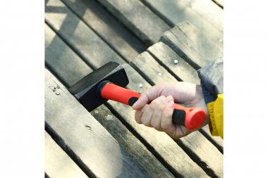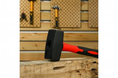 Рукоятка кувалды изготовлена из фибергласа. Данный материал отличается стойкостью и долговечностью, не изменяет цвет и не подвержен коррозии. Рукоятка не скользит в руке благодаря резиновому покрытию с рифлением.