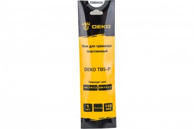 Нож для триммера пластиковый DEKO TB5-P, 5шт Тип пластиковый нож Внешний диаметр 150 мм Внешний диаметр (дюйм)6 Количество лопастей 2шт Назначение трава
