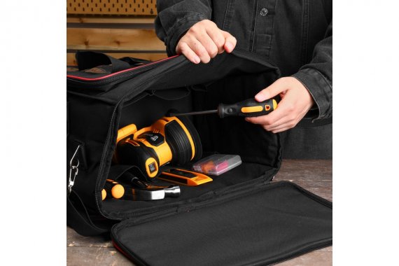 Сумка монтажника DEKO DKTB58 065-1079 идеально подходит для хранения и переноски инструментов. Сумку можно носить как в руках, так и на плече. Для этого предусмотрен ремень, который входит в комплект.