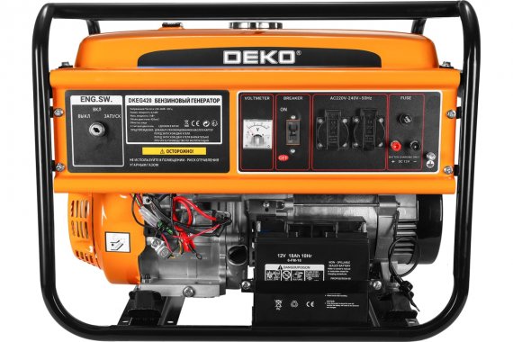 Генератор бензиновый DEKO DKEG420, 7 кВт Двигатель: 4-тактный Объем двигателя: 420см3 Запуск: ручной/электростартер 220В медь 690х525х560 мм 16А