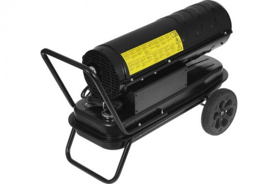Удобная рукоятка и два больших колеса облегчают перемещение нагревателя.
