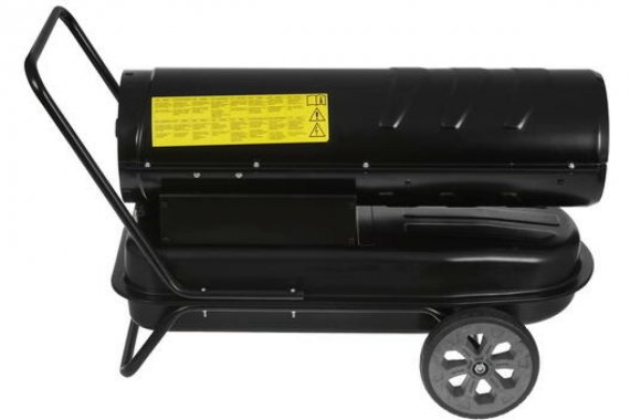 Удобная рукоятка и два больших колеса облегчают перемещение нагревателя.