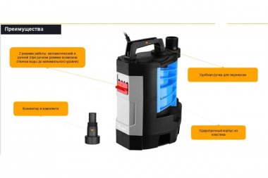 Насос дренажный DEKO DWP-950P PLUS (грязевая, 2 режима, 220В, 950Вт, пластик) 241л/мин 359х199х263 мм 220В IPX8