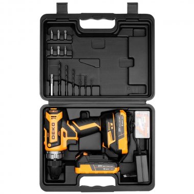 Аккумуляторная дрель-шуруповерт DEKO DKCD20V в кейсе + набор 63 инструмента для дома, 20В, 2х2.0Ач