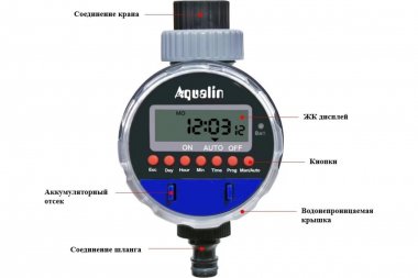 Электронный таймер для полива Aqualin at02 c жк-дисплеем 082-2051 предназначен для автоматического полива в системах орошения.