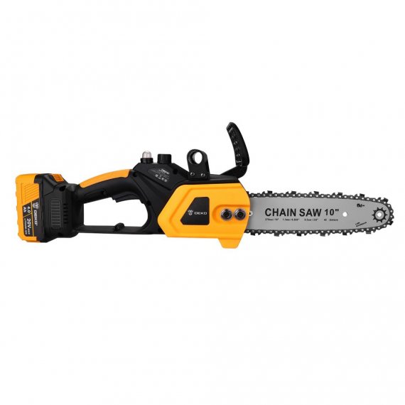 Пила цепная аккумуляторная бесщеточная DEKO DKCHS 20, 10", 20В, 1x4.0Ач, з/у 0-2150об/мин 75мл