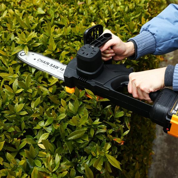 Пила цепная аккумуляторная бесщеточная DEKO DKCHS 20, 10", 20В, 1x4.0Ач применяется при работе в мастерской или в саду для распиливания различных материалов. Предназначена для пропилов в древесине и пластмассе.