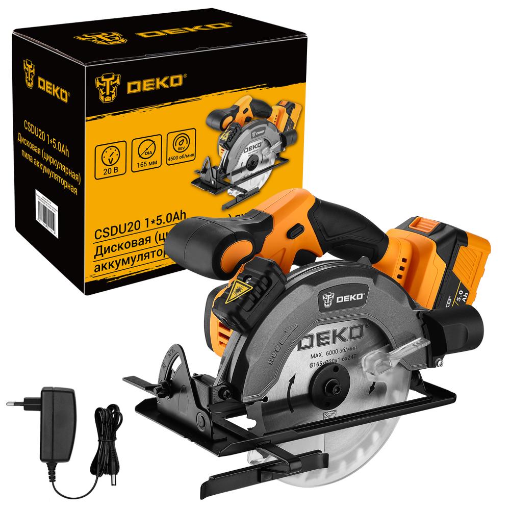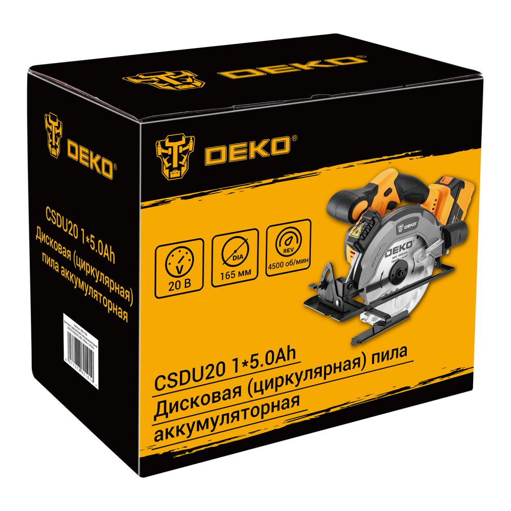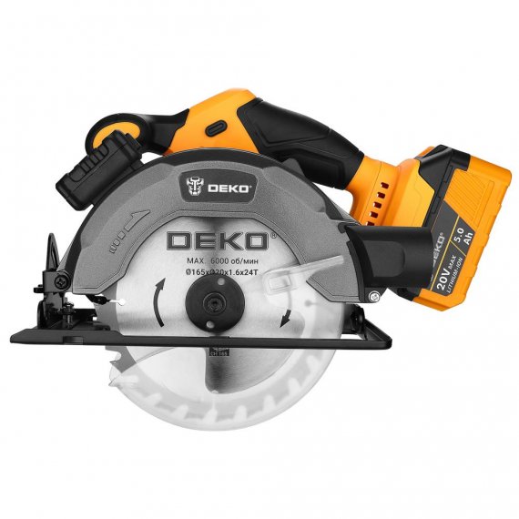 Дисковая (циркулярная) пила аккумуляторная DEKO CSDU20, 20В, 165мм, 1x5.0Ач