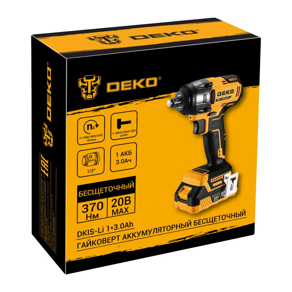 Гайковерт аккумуляторный бесщеточный DEKO DKIS-Li, 20В, 1*3.0Ач, 370 Нм