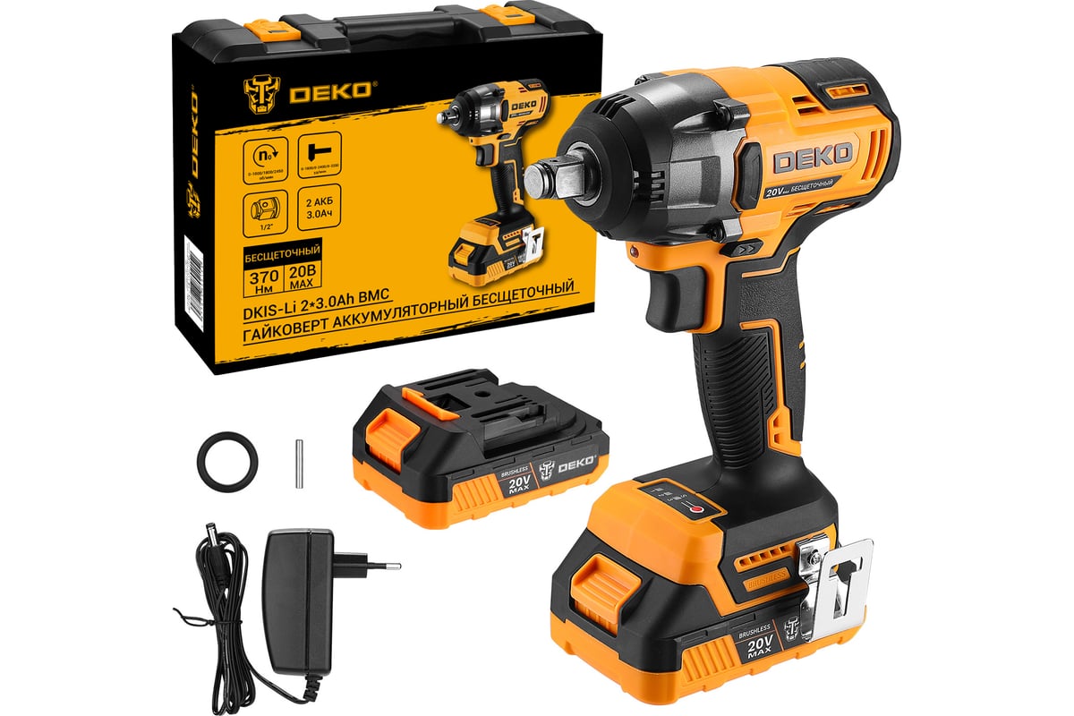 Гайковерт аккумуляторный бесщеточный DEKO DKIS-Li, 20В, 2*3.0Ач, 370 Нм, в кейсе