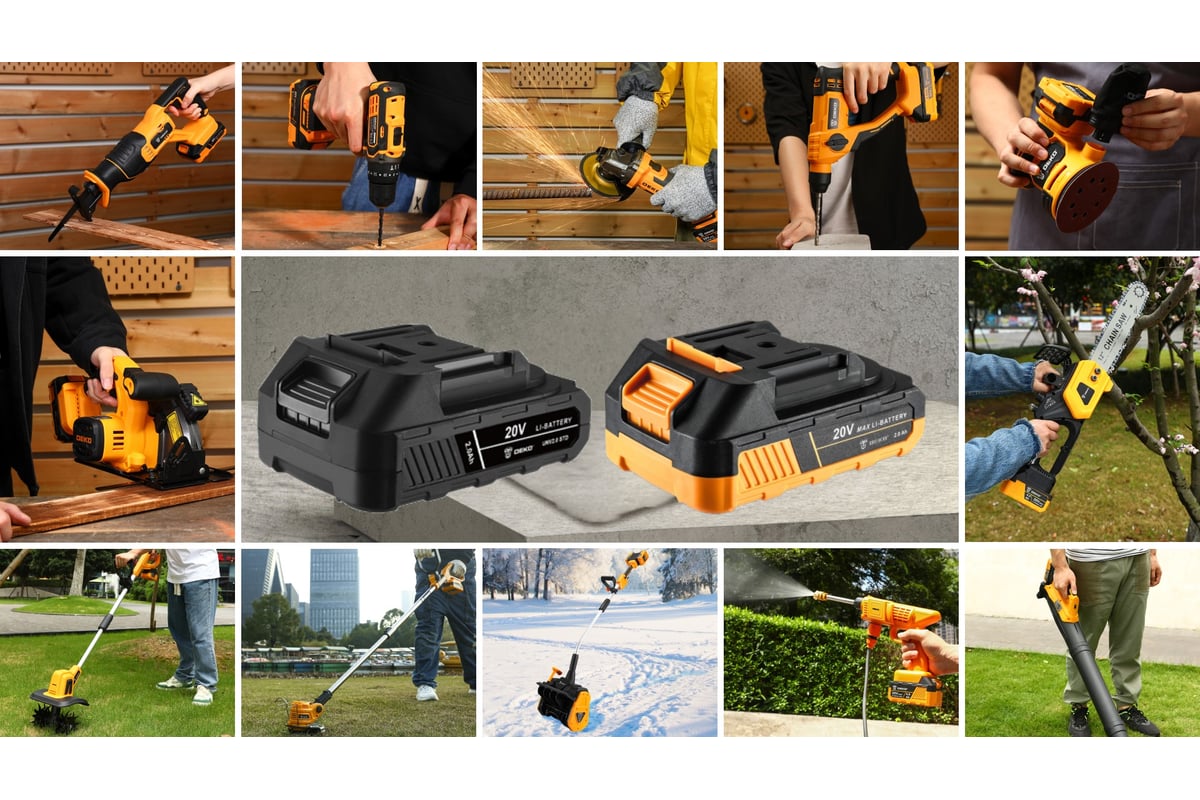 - С аккумуляторами от бесщеточного инструмента DEKO, произведённым не ранее 2024 года