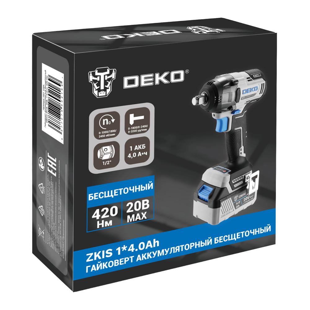 Deko 083-1084 Гайковерт аккумуляторный бесщеточный 20В, 1*4.0Ач, 420 Нм