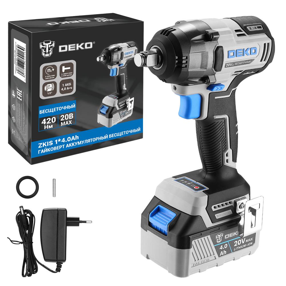 Гайковерт аккумуляторный бесщеточный DEKO ZKIS, 20В, 1*4.0Ач, 420 Нм