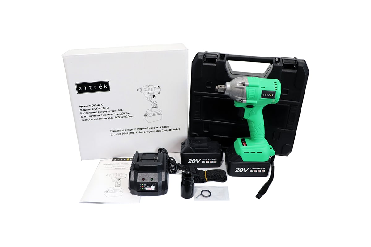 Гайковерт аккумуляторный ударный Zitrek Crusher 20-Li (20В, Li-ion аккумулятор 2шт, ЗУ, кейс)