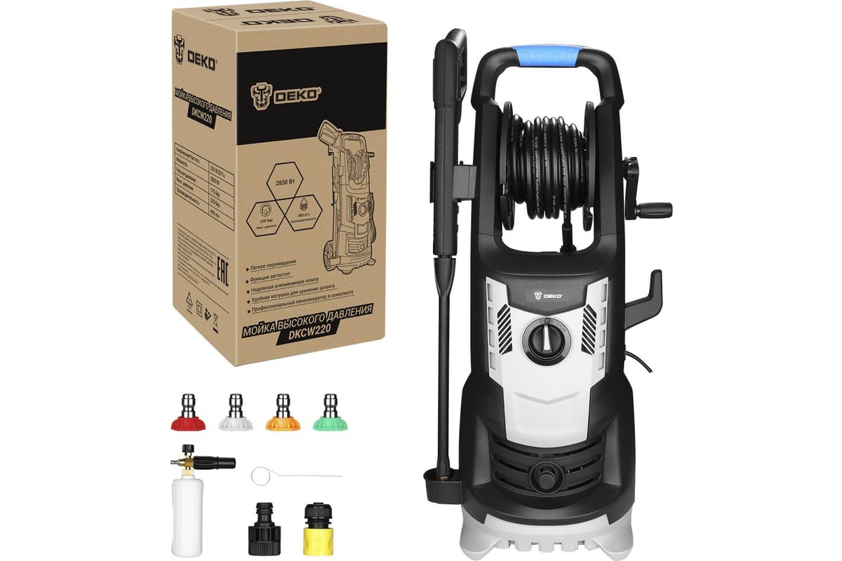 Мойка высокого давления DEKO DKCW220 предназначена для мытья транспортных средства (машин, лодок, мотоциклов и т.д.), очистки загрязненных поверхностей при помощи чистой воды под высоким давлением (при необходимости с добавлением моющих средств) в бытовых условиях. Мойка оснащена функцией Автостоп. Надежная алюминиевая помпа имеет небольшой вес и не подвергается процессу коррозии. Мойка может забирать воду из любого подходящего источника - водопровода, садовой бочки или водоема.