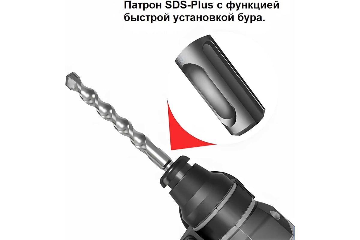 Перфоратор оснащен патроном стандарта SDS-Plus. Облегченная конструкция и дополнительная ручка создают все условия для эффективной работы инструментом.