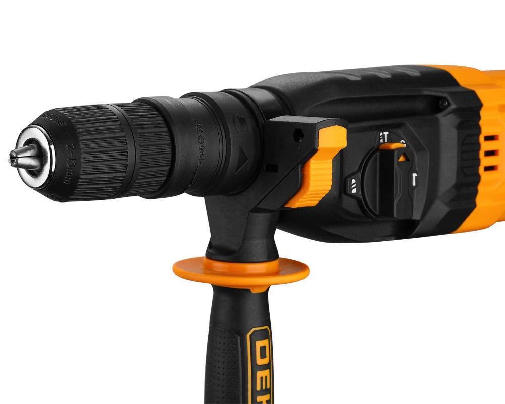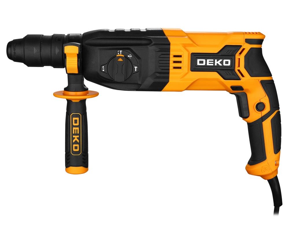Перфоратор сетевой DEKO ZKH1100 предназначен для сверления отверстия в различных материалах (дерево, бетон, кирпич, сталь и т.д.) в режимах сверления и сверления с ударом, а также ударного долбления при установке соответствующей оснастки.