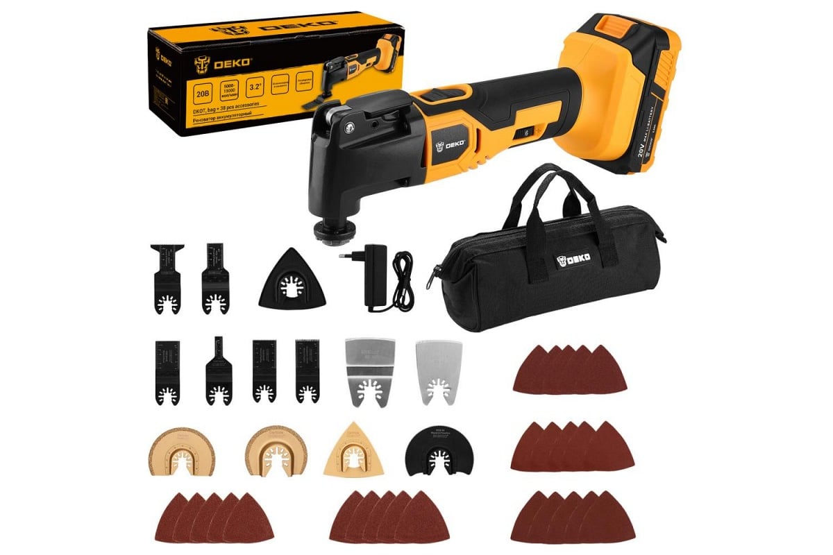 Реноватор DEKO DKOT в сумке + набор предметов 38 шт, 20В, 1*2.0Ач, з/у