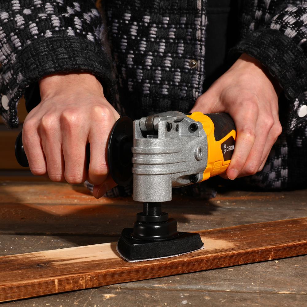 Реноватор DEKO DKOT600W с сумкой и набором аксессуаров 9 шт предназначен для пиления, резки, шабрения и шлифования в труднодоступных местах, таких как углы и кромки, вырезания отверстий, распиливания небольших заготовок, шлифования, полирования и зачищения различных поверхностей.