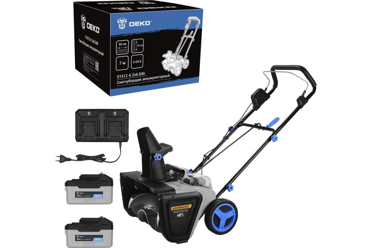 Снегоуборщик аккумуляторный DEKO ST412-6, 2*20В, 2*6.0Ач, 50см, 2 фары