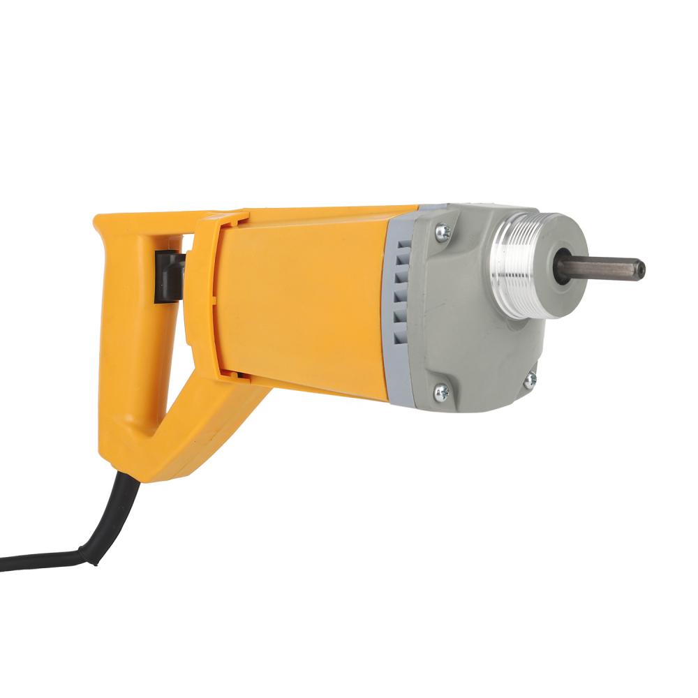 Модель оснащена встроенным вибромотором мощностью 950 Вт и рассчитана на работу от сети 220В. Конструкция включает погружной вибрационный элемент — булаву диаметром 35 мм, соединённую с двигателем через гибкий вал длиной 1,5 м и диаметром 10 мм. Радиус действия вибронаконечника составляет до 200 мм, что обеспечивает эффективное удаление воздушных включений из бетонной смеси и равномерное распределение состава по опалубке.