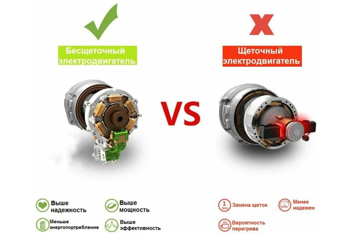 Бесщеточный двигатель обеспечивает высокую производительность и долгий срок службы